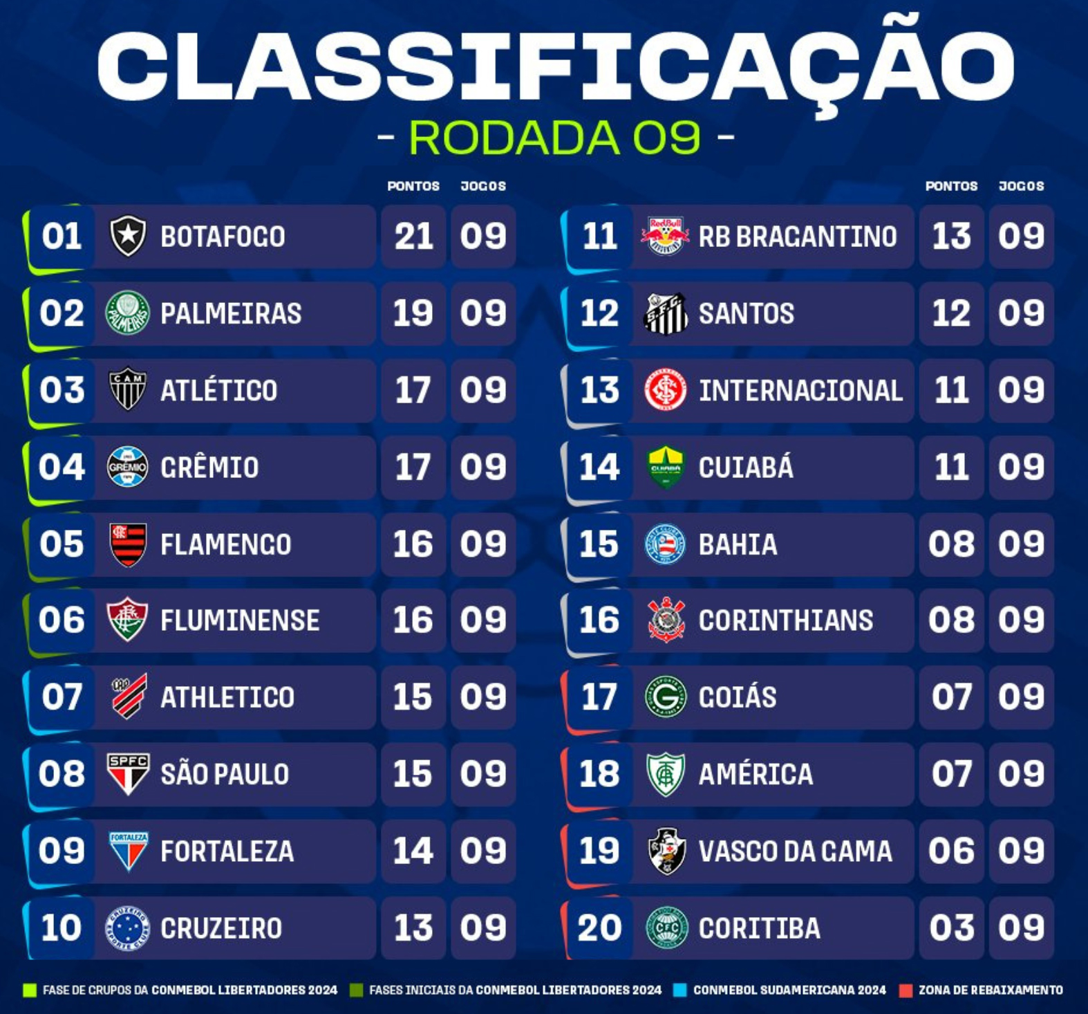 O Atlético Mineiro é atualmente o terceiro colocado na tabela, com 17 pontos conquistados em nove jogos. O confronto promete ser bastante disputado e o Bragantino espera sair de Belo Horizonte com um resultado positivo para subir na classificação e encostar nos times que estão na parte de cima da tabela.