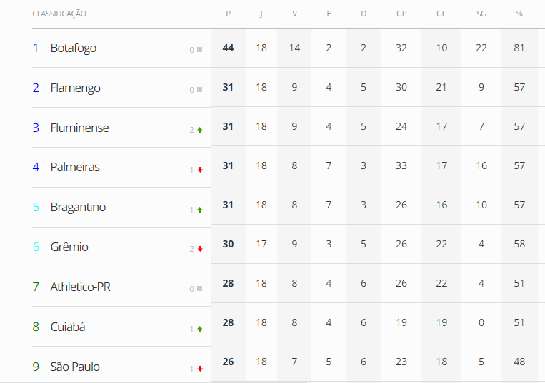 Com esse resultado, a equipe comandada pelo técnico Pedro Caixinha alcançou 31 pontos na tabela de classificação e se aproximou dos times que estão brigando pelo G4. O Bragantino ocupa agora a quinta colocação, com a mesma pontuação do Palmeiras (4º); Fluminense (3º), e do Flamengo (2º).