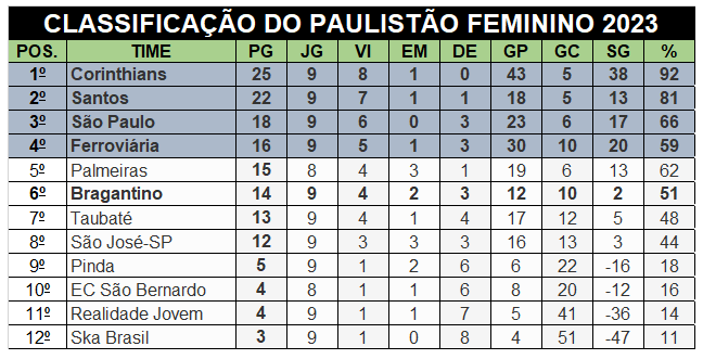 Com o resultado, o time comandado pela técnica Rosana Augusto acumula 14 pontos em nove jogos disputados, ocupando a sexta posição na tabela de classificação. Até o momento, o Massa Bruta conquistou quatro vitórias, dois empates e três derrotas no Paulistão Feminino deste ano.