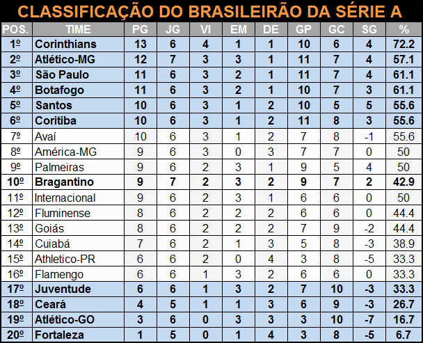 No campeonato nacional, o Red Bull Bragantino ocupa neste momento a 10ª posição, com nove pontos ganhos, mas, dependendo dos resultados deste final de semana, a equipe pode terminar a 7ª rodada na parte debaixo da classificação.