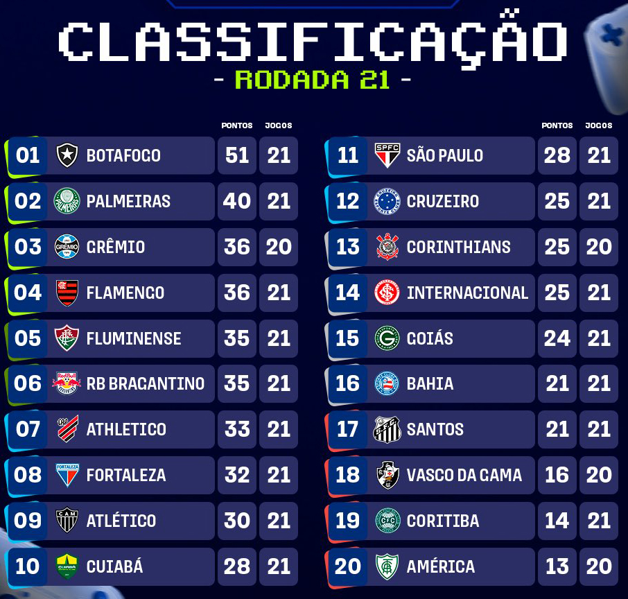 Atualmente, o Braga é o sexto colocado no Brasileirão 2023, com 35 pontos, brigando lá em cima na tabela pelo G4. Enquanto isso, o time cruzeirense ocupa a 12ª posição, com 25 pontos, dez a menos que o Bragantino, e precisa da vitória amanhã para não correr risco de ficar próximo da zona de rebaixamento, já que sua distância é de apenas quatro pontos do primeiro time que está fora dela.