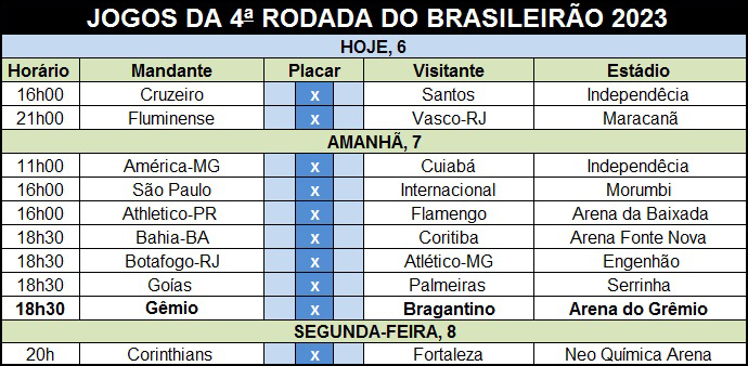Na sequência, pela quinta rodada, o Bragantino recebe, na quarta-feira, 10, em Bragança, o América-MG. O duelo será disputado no Nabizão, às 19h.