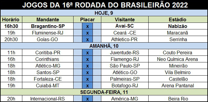 Depois da rodada deste final de semana, restarão apenas três para o encerramento do primeiro turno. E o Massa Bruta precisa somar pontos para se afastar da zona do rebaixamento, já que, na sequência, a equipe fará dois jogos fora de casa, contra o América-MG, na 17ª rodada, e o Fluminense, na 19ª; além de um como mandante contra o Fortaleza, na 18ª. (Confira nesta página a classificação atualizada do Brasileirão 2022).