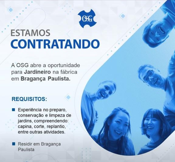 A fábrica OSG Sulamericana está oferecendo uma oportunidade de emprego para jardineiro em sua unidade na cidade de Bragança Paulista. Para se candidatar, é preciso atender a alguns requisitos como: ter experiência no preparo, conservação e limpeza de jardins, compreendendo, capina, corte, replantio, e residir em Bragança, entre outras atividades. Os interessados na vaga devem se cadastrar através deste link: https://lnkd.in/dfRQzBgV