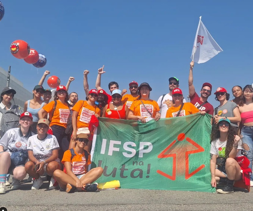 Movimento paredista do IFSP foi à Arena Corinthians, no dia 1º de maio, para apresentar suas reivindicações ao presidente Lula