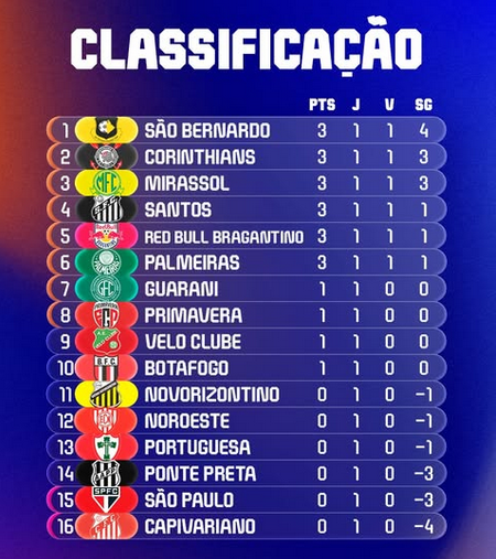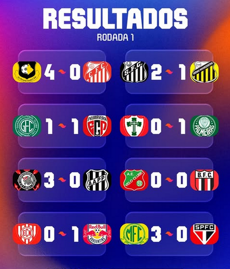Confira abaixo todos os resultados da primeira rodada e a classificação: