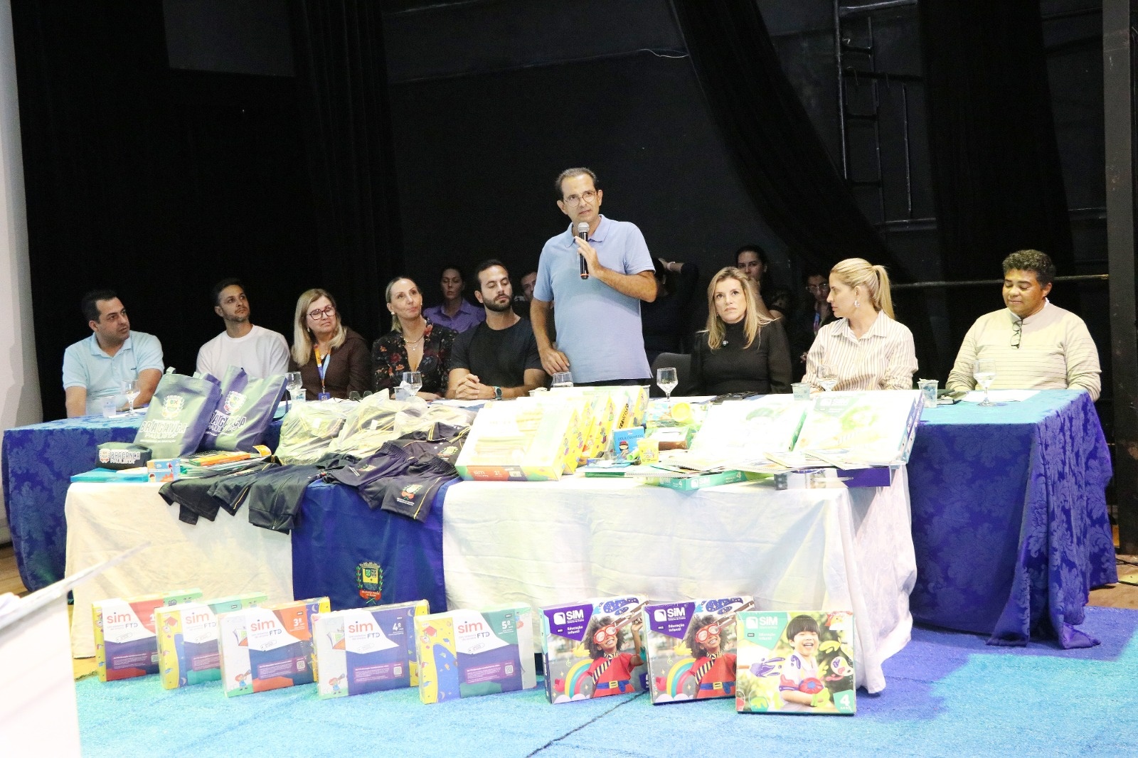 O evento ocorreu no Teatro Carlos Gomes, no Centro Cultural Prefeito Jesus Adib Abi Chedid, e reuniu autoridades municipais, profissionais da educação, representantes de empresas parceiras, vereadores, imprensa, alunos e convidados. A programação foi dividida em dois momentos: a apresentação detalhada dos investimentos e materiais que passam a compor a rotina escolar e, na sequência, a palestra magna “Por uma escola que encanta e transforma vidas”, ministrada pelo professor Júlio Furtado, referência nacional na área educacional.