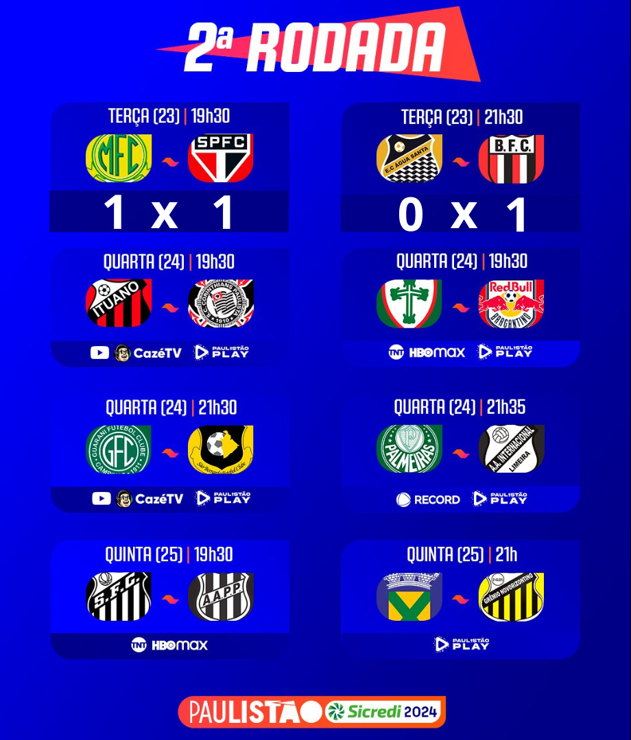 Hoje à noite, o Bragantino entra em campo para disputar a segunda rodada do Campeonato Paulista da Série A1, enfrentando a Portuguesa no Estádio do Canindé, em São Paulo, às 19h30 (horário de Brasília). O confronto será transmitido pelos canais Paulistão Play, TNT e HBO Max.