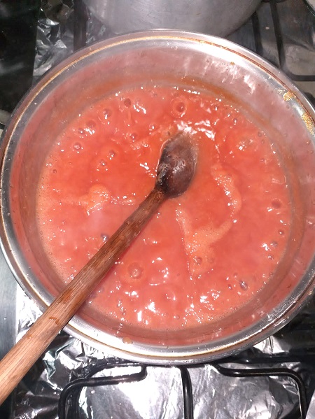 Para saber o ponto: quando começar a perceber que está aparecendo o fundo da panela, pingue um pouco da geleia num pires com água. Se o doce não esparramar e você conseguir juntar com os dedos essa massinha, a geleia está no ponto.