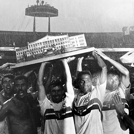 Em pé - Adílson, Zetti, Ronaldão, Vítor, Pintado, Ronaldo Luís e Toninho Cerezo. Agachados - Hélio Santos (massagista), Müller, Palinha, Cafu, Raí e Moraci Sant’Anna (preparador físico)