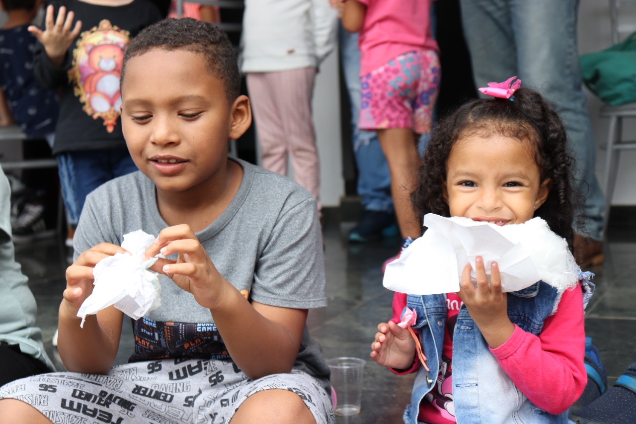O evento integra o projeto “Natal Solidário”, desenvolvido há mais de dez anos pela Polícia Militar. As crianças realizaram diversas atividades: além de brincar, dançar e cantar com a mascote do Proerd, o leão Daren, elas também passearam de viatura, saborearam os lanches servidos e ganharam presentes do Papai Noel.