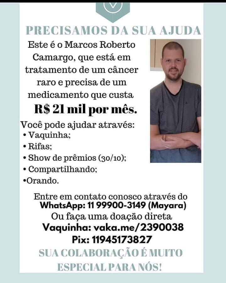 Marcos Roberto Camargo está com uma campanha de financiamento coletivo para o tratamento contra o câncer, ao qual precisa se submeter. O link para a vaquinha on-line é http://vaka.me/2390038